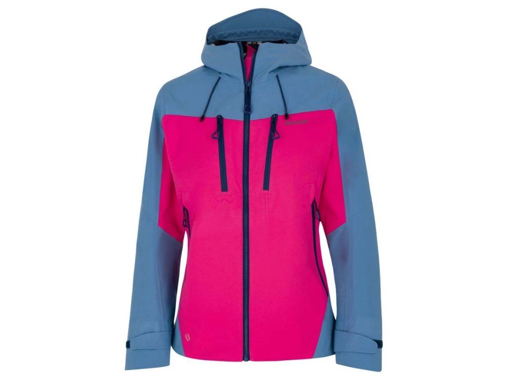 Odolná a funkční dámská bunda navržená do náročných podmínek. Díky třívrstvé konstrukci a podlepeným vnitřním švům spolehlivě chrání před deštěm i větrem. Voděodolné zipy zajišťují maximální ochranu před vlhkostí, zatímco ventilační zipy v podpaží umožňují efektivní odvětrávání během intenzivního pohybu. Bunda je vybavena kapucí s možností adjustace. Nastavitelná šířka spodního lemu umožňuje optimální přizpůsobení obvodu bundy. 1 vnitřní zipová kapsa, 2 boční zipové kapsy a 2 náprsní zipové kapsy poskytují dostatek prostoru pro uložení všech nezbytností. Bunda je skvělou volbou pro volnočasové a outdoorové aktivity i do náročného terénu.