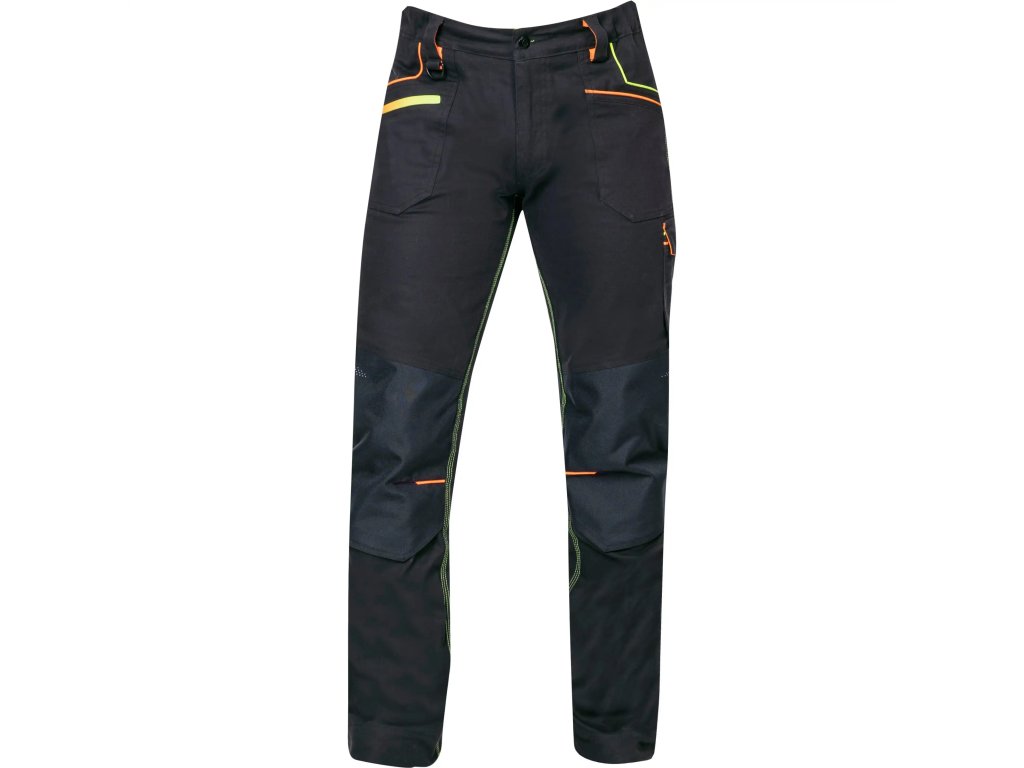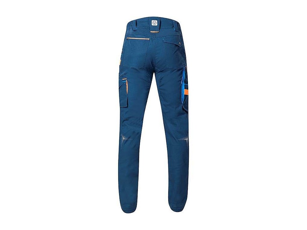 Moderní pánské pracovní kalhoty jsou vyrobené ze speciálního strečového bavlněného materiálu Amalytton®. Ten vyniká nejen prodyšností a pevností, ale překvapí také hladkým a jemným povrchem. Materiál má sníženou gramáž, která zajišťuje příjemný pocit i při dlouhodobém nošení. Namáhané části kalhot jsou z vysoce odolného a do 4 směrů pružícího materiálu Tabiflex® a jsou trojitě prošité. Tento materiál je také extrémně odolný proti oděru i roztržení a zároveň flexibilní. Kalhoty mají slim-fit střih, který je ergonomický, vysoce funkční a navíc skvěle vypadá, protože zvýrazňuje siluetu. Oblast kolen a spodní lem nohavic jsou zesílené materiálem Oxford s vodoodpudivou úpravou, který je vysoce odolný proti oděru. Kalhoty mají také kapsu pro vložení nákoleníků při časté práci v kleče. Skvěle padnou na tělo díky pružnému pasovému límci se skrytým zadním dvojitým poutkem na opasek. Ve vnitřní části pasu je protiskluzová páska, která pomáhá držet kalhoty na místě. Kromě poutek na opasek zde najdete také D kroužek na karabinu. Kalhoty mají také mnoho praktických kapes - 2 boční kapsy, 1 přední kapsu na zip, 1 přední kapsu na nářadí s širokým poutkem, multifunkční kapsu na pravé nohavici s širokými poutky, do které se vejde skládací metr, šroubovák a odlamovací nůž, další velká dvojitá kapsa krytá patkou na druk je na levé nohavici, v zadní části kalhot jsou 2 kapsy, z nichž ta na pravé straně je krytá patkou na druk. Pro lepší viditelnost jsou kalhoty vybavené dynamickými reflexními 3D potisky a hi-vis doplňky. Délku nohavic je možné snadno prodloužit až o 5 cm pouhým uvolněním švu.