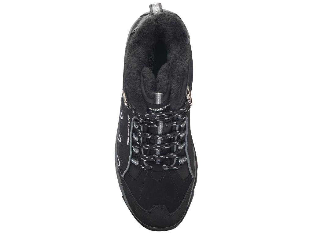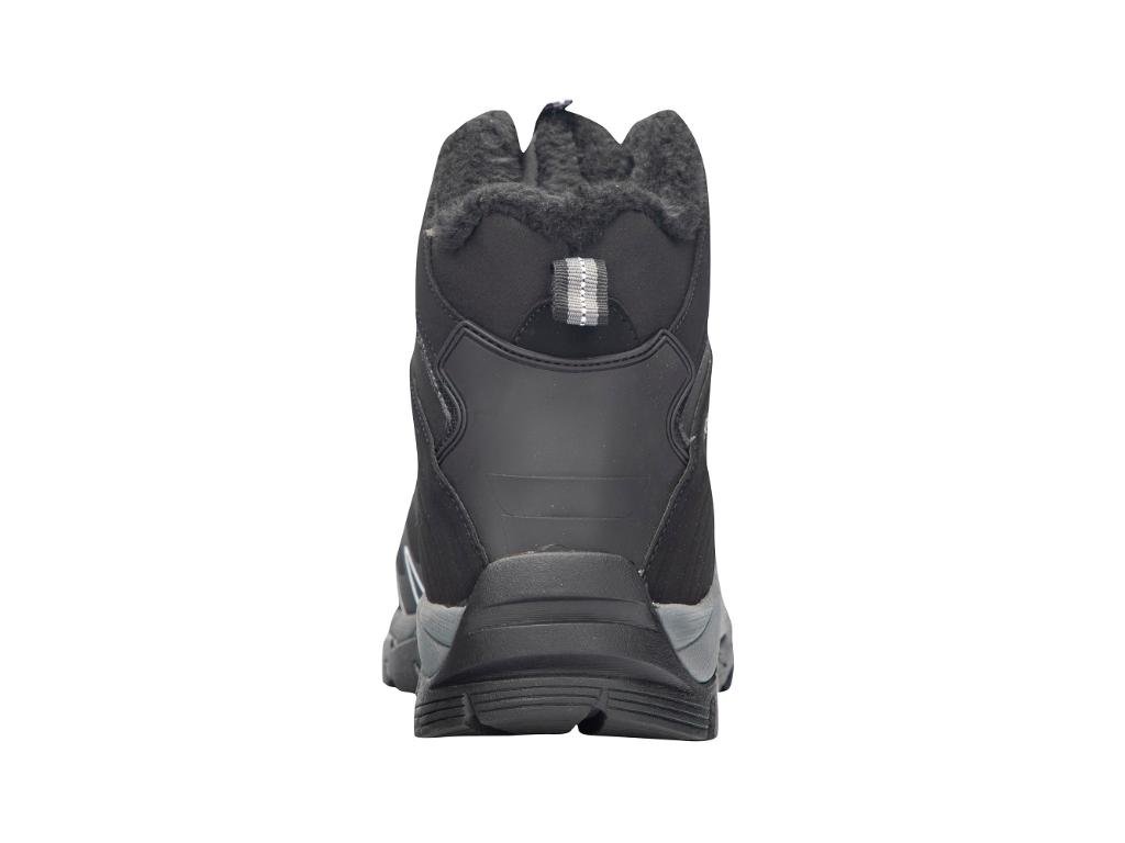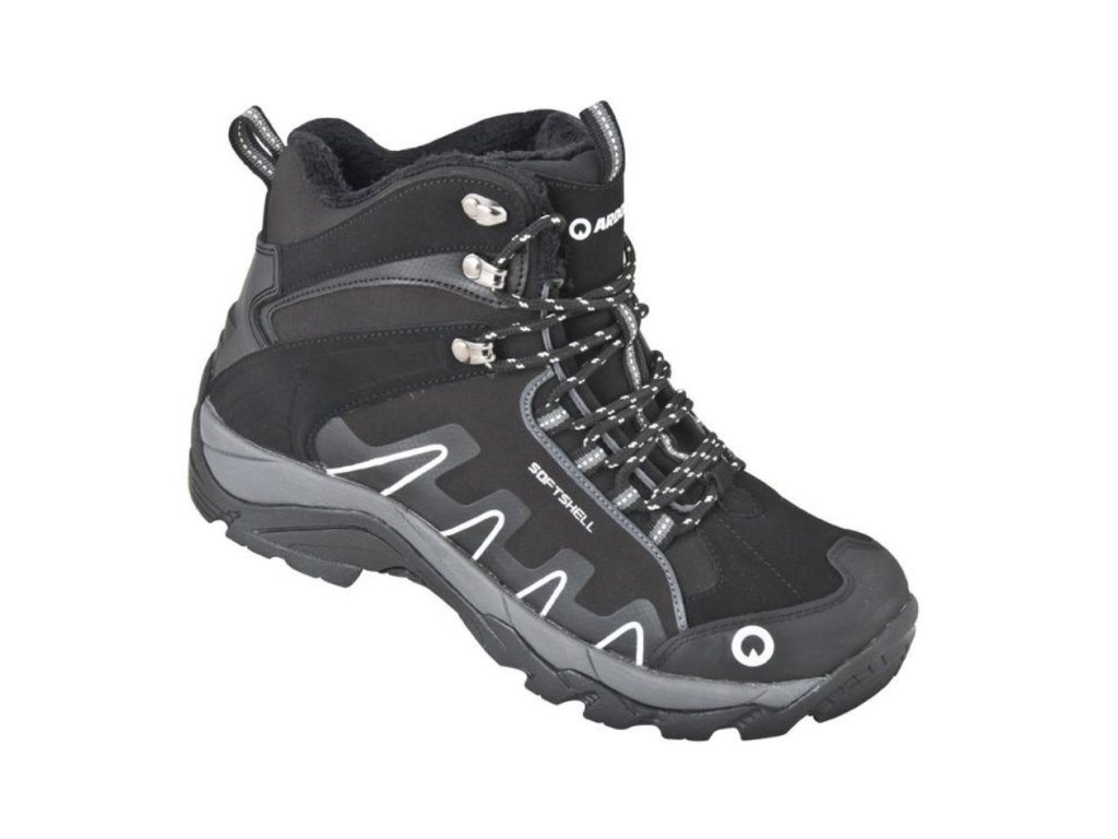- Zimní softshellová obuv sportovního střihu je zateplená černým umělým kožíškem