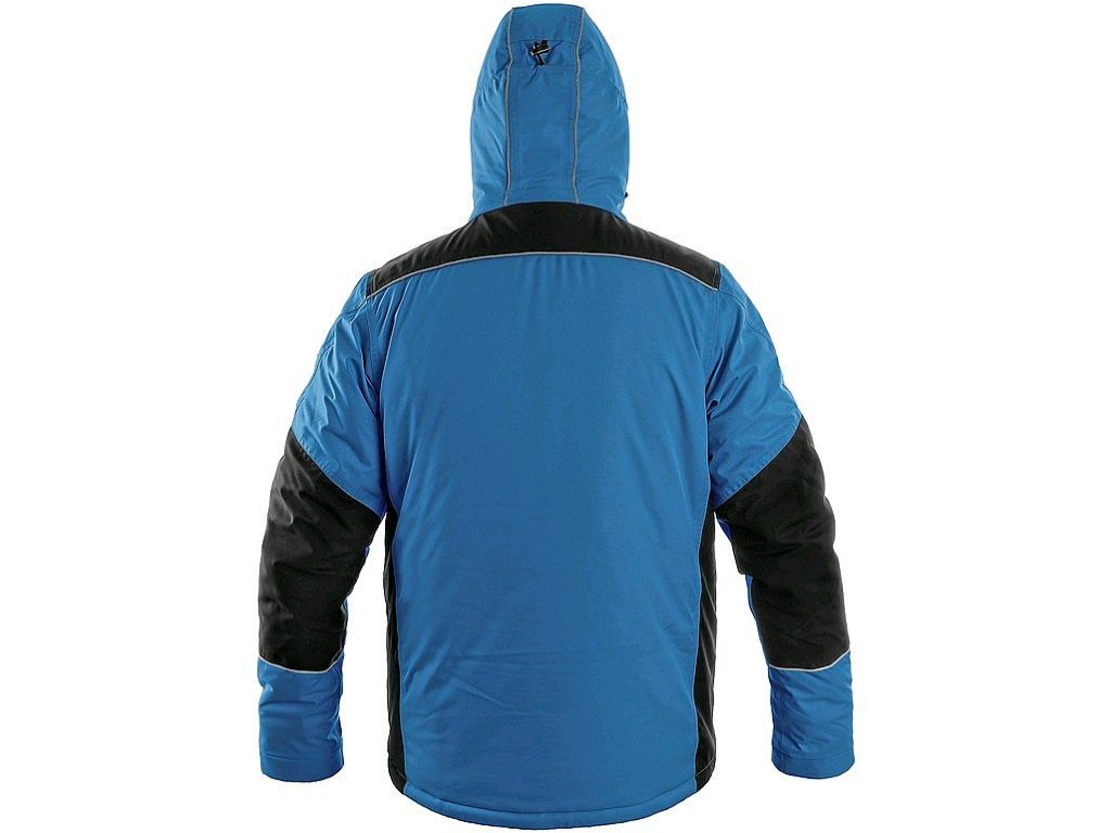 Pánská zateplená bunda, odolná proti vodě a větru, kryté zapínání na zip, odepínací kapuce, vnitřní manžety v rukávech, plastové poutko pod náprsní kapsou, stahování v dolním okraji, lepené švy, TPU membrána, reflexní doplňky. Náprsní kapsy na zip nebo druky, 2 boční kapsy na zip, 3 vnitřní kapsy.