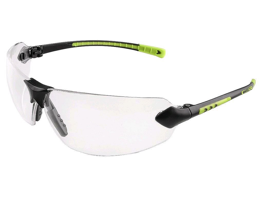 Polykarbonátové brýle se štíhlými pružnými postranicemi nezpůsobující tlak a možností nastavení úhlu zorníku. Vhodné pro použití s přilbou nebo maskou, při práci ve stavebnictví a skladech.