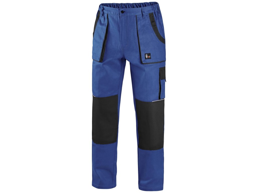 Pánské montérkové kalhoty - prodloužená varianta na výšku 194 cm. Pas s poutky na opasek, vzadu do gumy, přední kapsy, boční kapsa na svinovací / skládací metr, boční kapsa na mobil / peněženku, zdvojená kolena, zadní kapsa s klopou, reflexní doplňky. Doporučené použití: stavebnictví, lehký průmysl, logistika, skladová manipulace, autoservisy, údržba, montáže, zemědělství, zahrada, hobby.