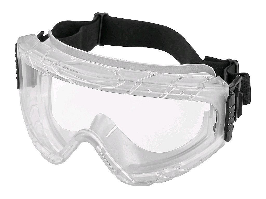 Robustní uzavřené acetátové brýle. Nepřímá ventilace. Poskytují ochranu UV360. Nastavitelná gumička. Ochrana proti postříkání chemikáliemi jako benzín a mazací oleje. Vhodné jako krycí brýle přes dioptrické brýle. Vhodné pro stavebnictví, strojírenství, zemědělství, laboratoře, automobilový průmysl.