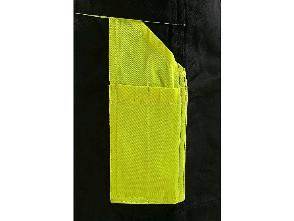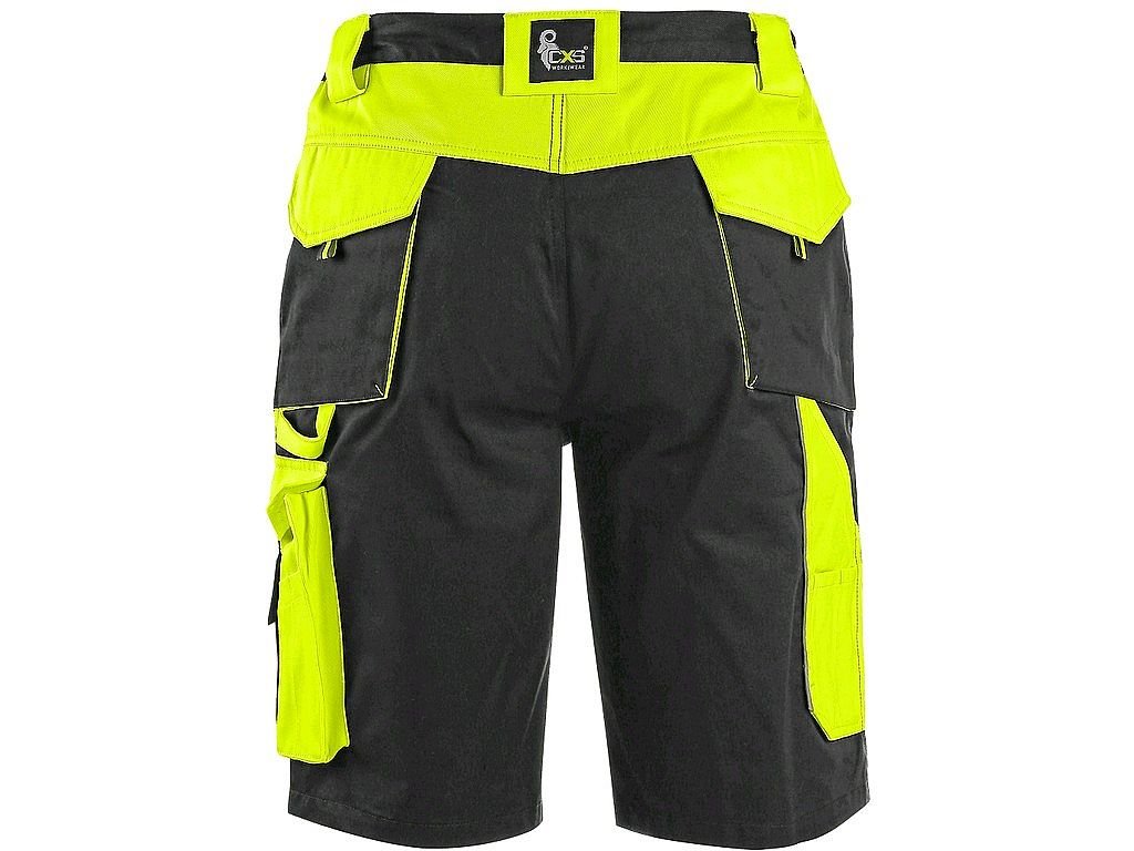 Pánské montérkové kraťasy, pas s poutky na opasek a gumou v bocích, přední klínové kapsy, multifunkční kapsy na obou stranách, dvě zadní kapsy s klopami, reflexní doplňky. Doporučené použití: letní pracovní oděv, stavebnictví, strojírenství, lehký průmysl, práce na silnici, odtahové služby, automobilový průmysl, logistika, skladová manipulace, spedice, autoservisy, údržba, montáže, zemědělství, zahrada, hobby.