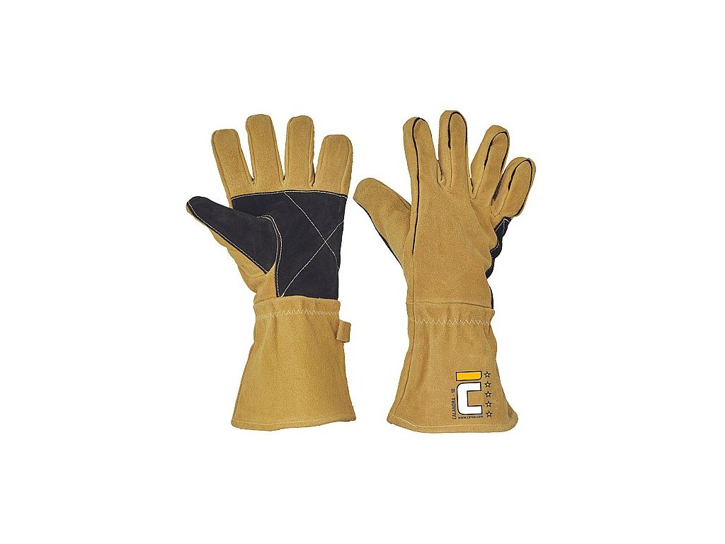 • celokožené rukavice pro svářeče z hovězí štípenky • bavlněná podšívka • zesílení v dlaní a na palci • kevlarové švy