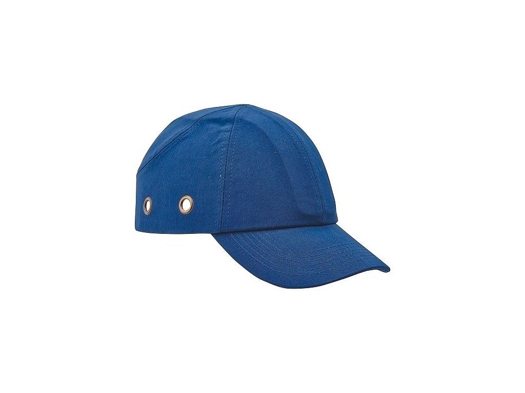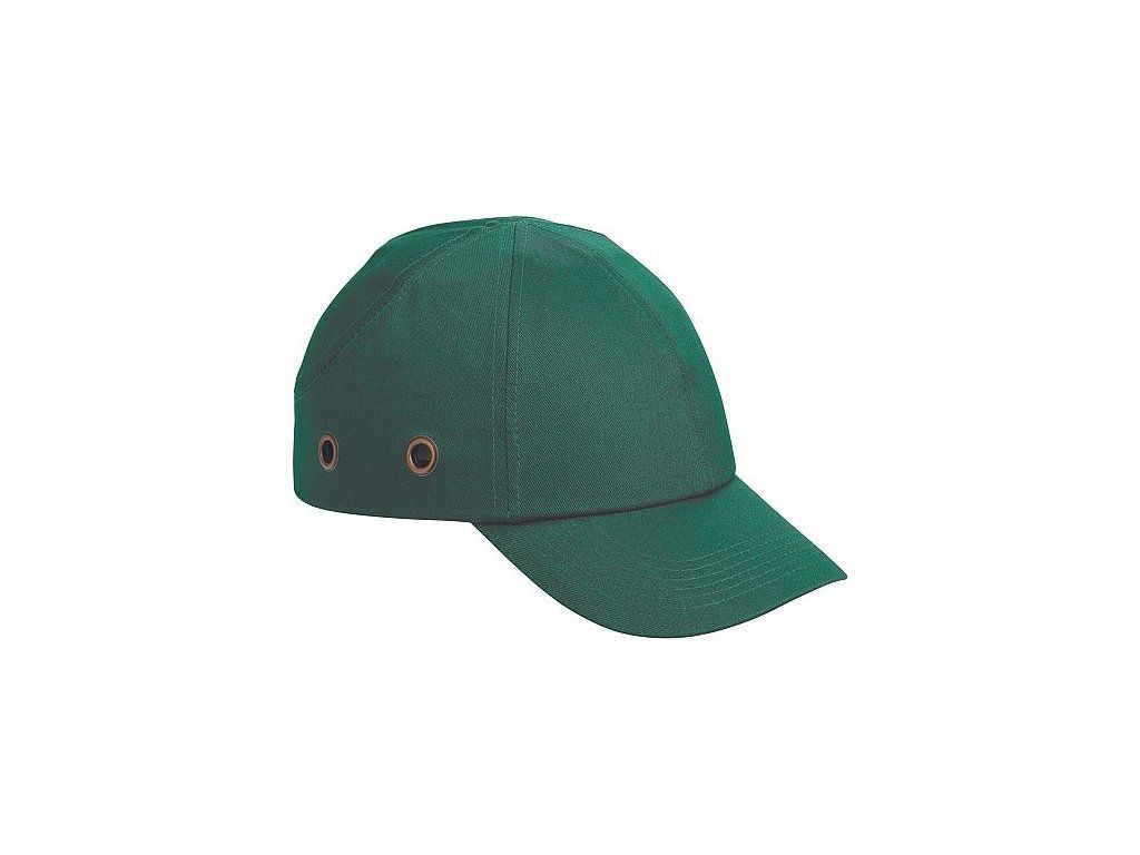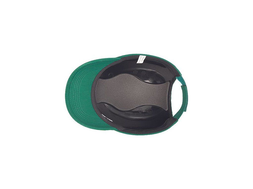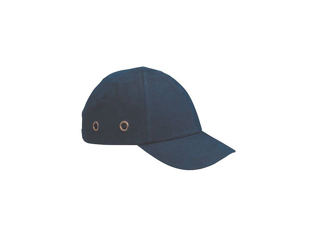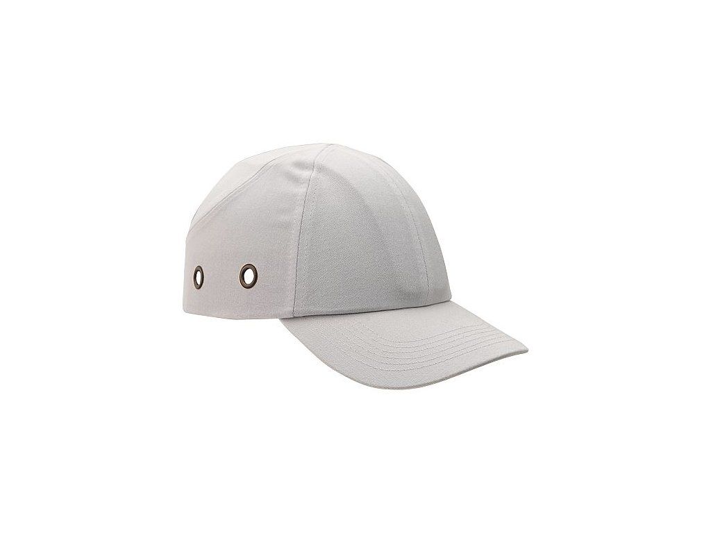 bavlněná čepice s pevným kšiltem, plastovou vnitřní výztuhou a možností nastavení velikosti pomocí suchého zipu; odpovídá normě EN 812.