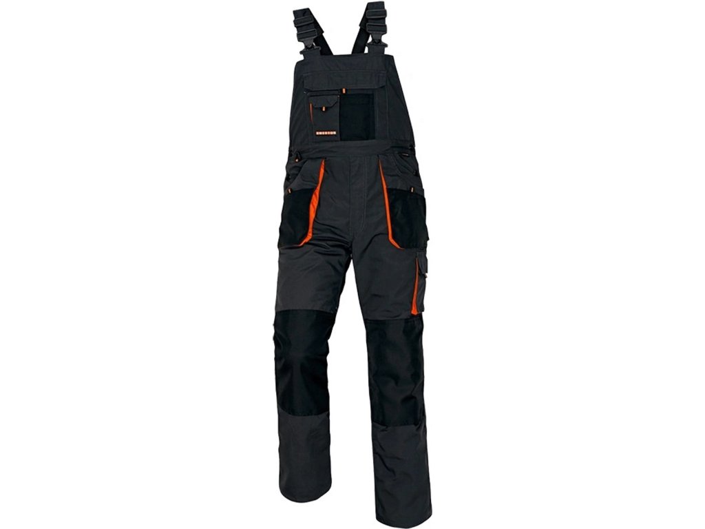 Pevné pánské montérky s laclem mají velmi pohodlný střih a jsou vysoce odolné. Namáhaná místa jsou zesílená materiálem DuPont CORDURA (polyester 600D). Kolena jsou také zesílená a navíc zdvojená s možností vložení nákoleníků. Díky tomu jsou vhodné i pro náročné pracovní podmínky. Praktické je i poutko na kladivo.