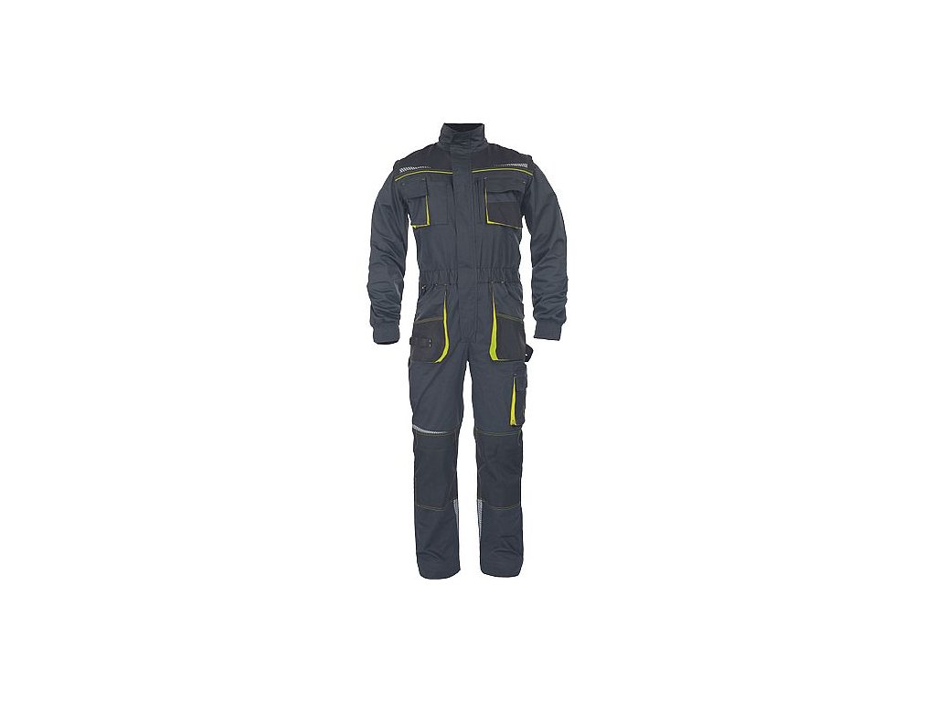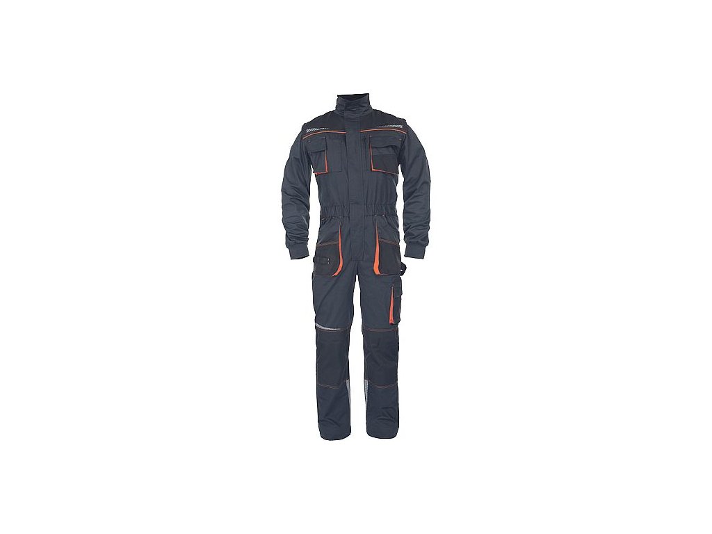• pracovní vysoce odolný strečový overal s elastickým pasem • multifunkční kapsy • 2 náprsní kapsy z toho jedna na mobilní telefon • Oxford 600D zesílení v oblasti loktů a kolenních kapes pro vložení chráničů kolen • odepínací rukávy s pletenými elastickými manžetami • reflexní segmentové detaily • prodloužitelná délka nohavic