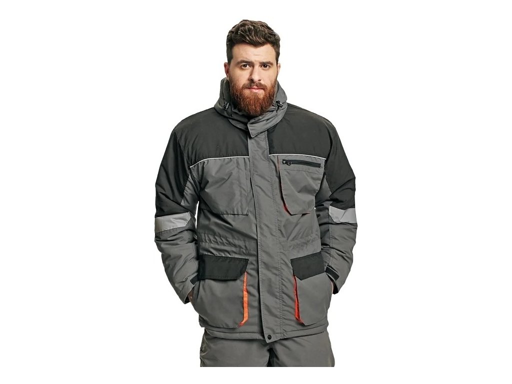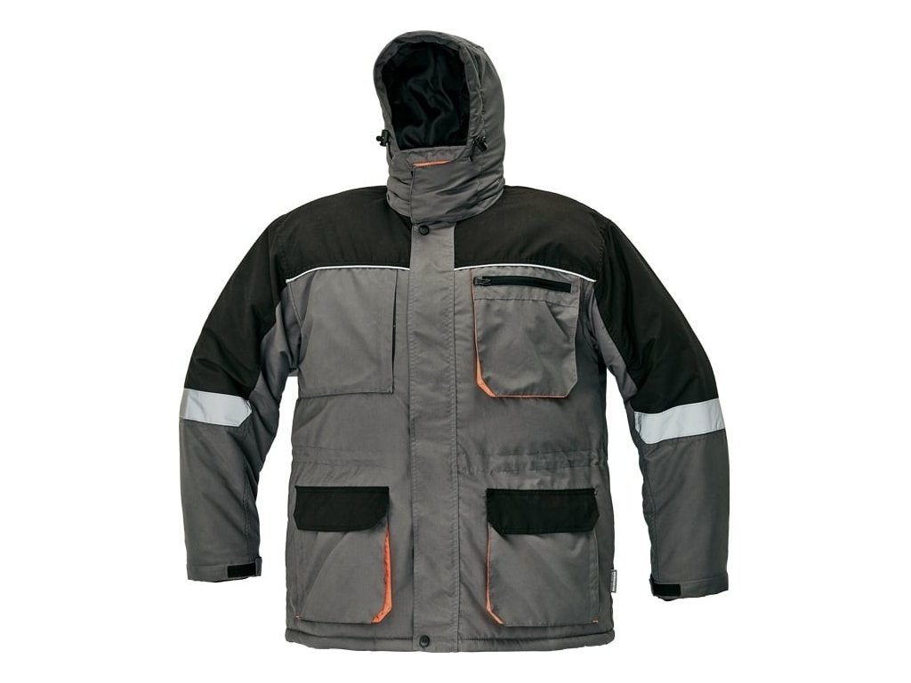 Zimní bunda Emerton. Vhodná pro celodenní nošení v náročných klimatických podmínkách. S reflexními doplńky. Odopínatelná kapuce na zip. Multifunkční, zateplená.