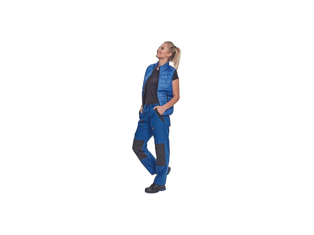 Dámská zateplená vesta; elastický pas; zapínání na zip; 2 boční kapsy na zip. Svrchní materiál: 100 % polyester, 63 g/m², taffeta, vnnitřní podšívka: 100 % polyester, vnitřní izolace: 100 % polyester, 200 g/m². Norma EN ISO 13688. Typy barevného provedení: modrá, navy.