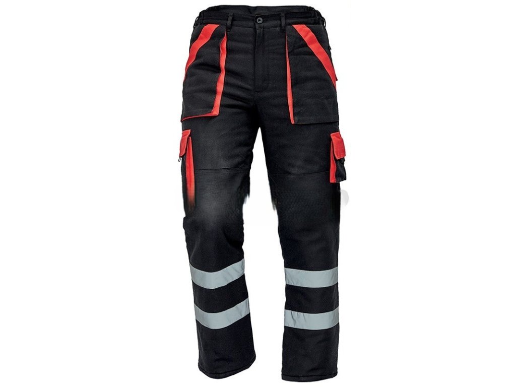 Zateplené montérkové kalhoty do pasu MAX WINTER REFLEX - inovované zimní montérky do pasu z kolekce MAX, kalhoty jsou na nohavicích doplněny o reflexní pruhy šířky 5 cm pro zvýšení viditelnosti, nejedná se o výstražný oděv s vysokou viditelností, 100% BA, 260g/m2, zateplení 100% polyester, zesílená kolena, kalhoty mají dvě zadní kapsy, dvě nabírané přední kapsy a dvě boční měchové kapsy, barevné kombinace: černo/červené, zeleno/černé, modro/černé, velikosti 56-64 DOPRODEJ