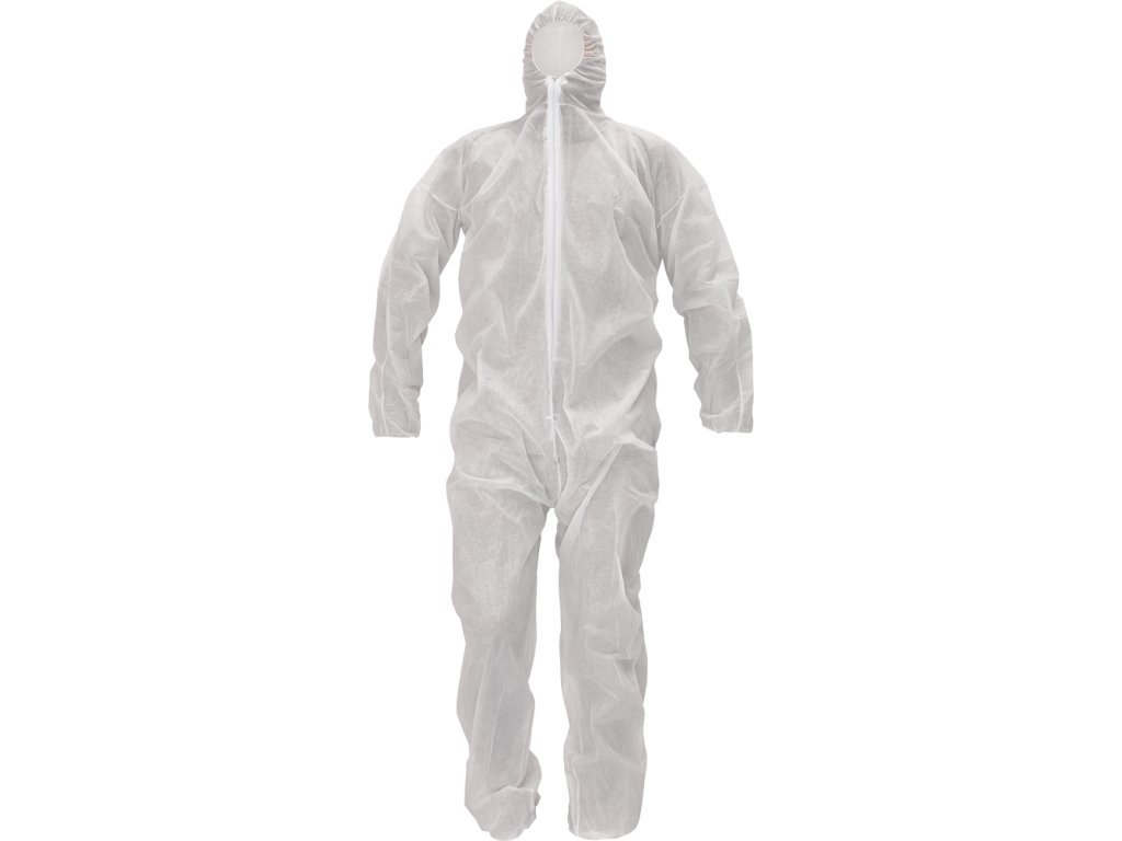 Jednorázová ochranná kombinéza s kapucí a zapínáním na zip. Svrchní materiál: 100 % polypropylen, 40 g/m². Norma EN ISO 13688. Velikost: M-3XL.