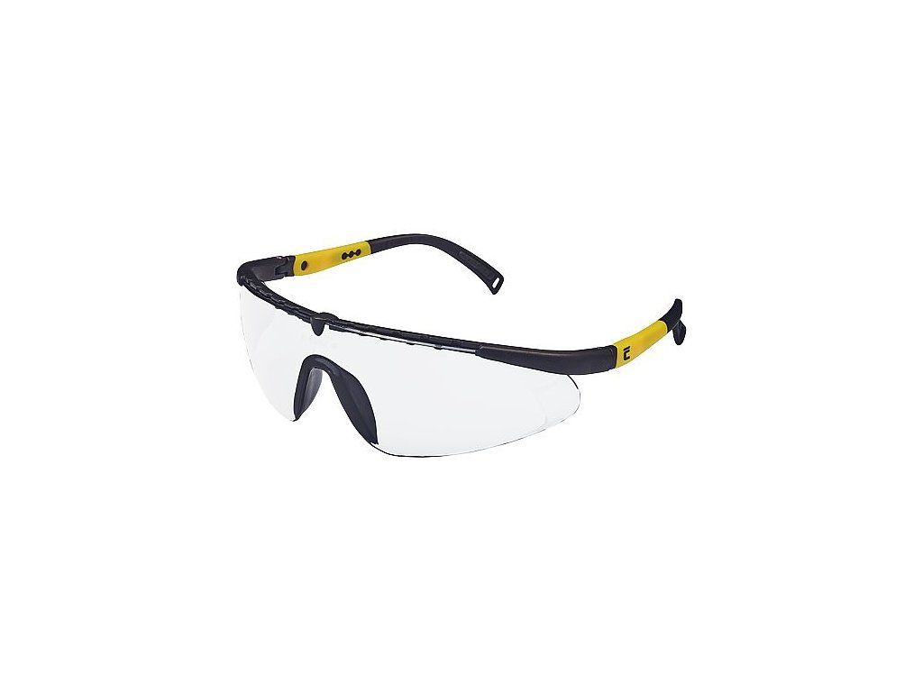 Brýle sportovního vzhledu optické třídy 1 s polykarbonátovým zorníkem s úpravou proti poškrábání a orosení (třída F dle normy EN 166); ochrana proti nárazu s malou energií a nastavitelnou délkou stranic; žlutý zorník má ochranný filtr proti UV záření dle normy EN 170; šedý zorník má ochranný protisluneční filtr dle normy EN 172