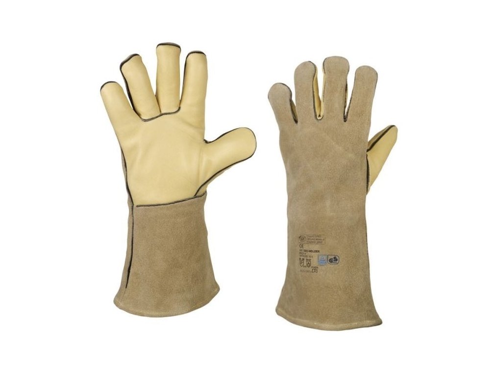celokožené rukavice z ovčí lícové kůže s 15 cm širokou manžetou z hovězí štípenky • certifikát: svářečské práce - typ B