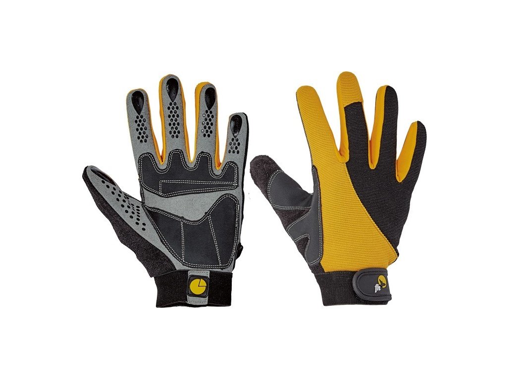 - Materiál: rukavice jsou vyrobeny z vysoce kvalitního syntetického materiálu s vlastnostmi jemné štípané usně, který nabízí odolnost a trvanlivost. Boky prstů jsou vyrobeny z nylonové tkaniny, která zajišťuje flexibilitu a snadnou manipulaci.