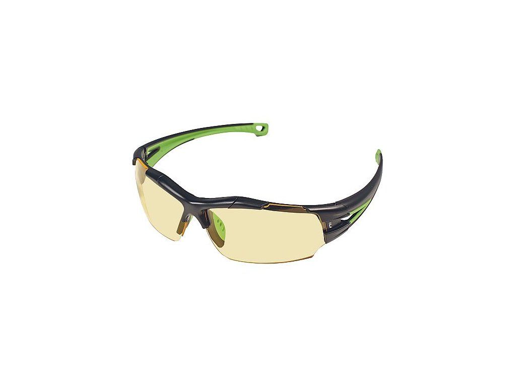 brýle sportovního designu s polykarbonátovým zorníkem třídy 1F dle EN166; zorník s ochranou proti poškrábání a proti zamlžení; ochrana proti letícím částicím s nízkou energií; měkký nosní můstek; kouřový zorník s protislunečním filtrem dle normy EN 172