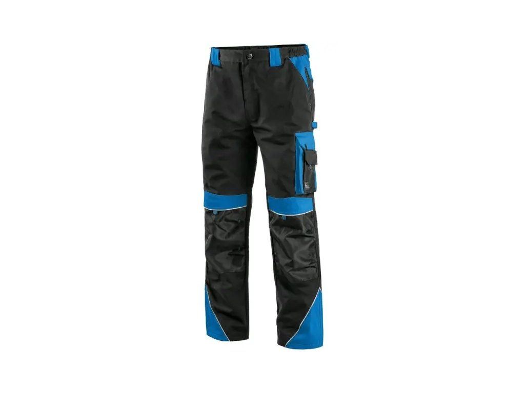 Pánské montérkové kalhoty, pas s poutky na opasek a gumou v bocích, přední klínové kapsy, multifunkční kapsy na obou stranách, kolena zesílena materiálem 600D polyesterem s možností vložení kolenních výztuh, dvě zadní kapsy s klopami, reflexní doplňky. Doporučené použití: stavebnictví, strojírenství, lehký průmysl, práce na silnici, odtahové služby, automobilový průmysl, logistika, skladová manipulace, spedice, autoservisy, údržba, montáže, zemědělství, zahrada, hobby.