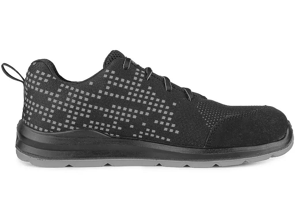 Textilní polobotka s ocelovou špicí a reflexními doplňky. Materiál: svršek z odolného 1,8 - 2,0 mm polyesteru pratelného do 30 °C, přední část zesílena mikrovláknem, 3-vrstvá prodyšná textilní podšívka, PU-PU, protiskluzová, olejivzdorná, antistatická podešev.