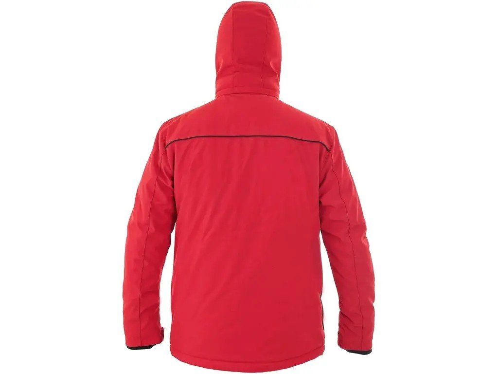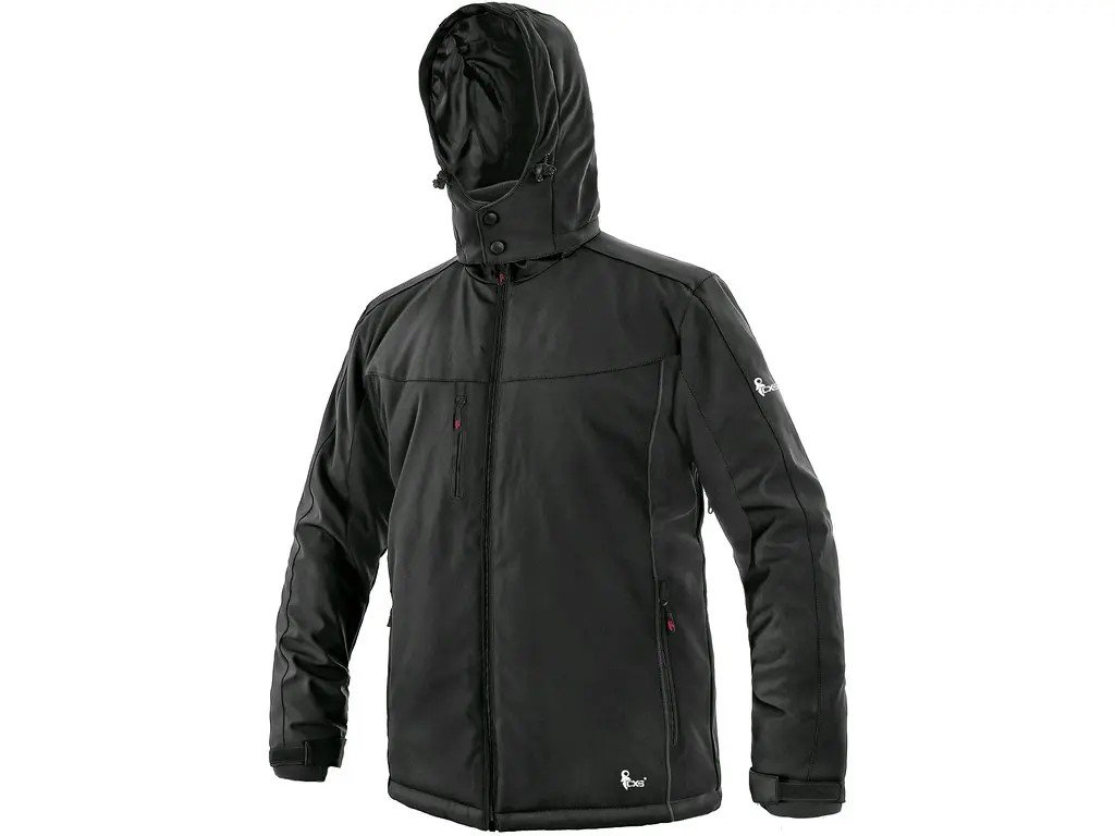 Pánská zateplená softshellová bunda, odolná proti vodě a větru, větrání v podpaží, odepínací kapuce, regulovatelná manžeta na rukávech a pružná manžeta v rukávech, stahování v dolním okraji, černé reflexní výpustky, TPU membrána, odolnost materiálu proti průniku vody 10 000 mm mimo oblast švů, paropropustnost 3 000 g/m2/24 h, podšívka je kombinací materiálů s fleecem, na levém spodním rukávu kapsička na zip, 2 spodní kapsy na zip, vnitřní kapsa.