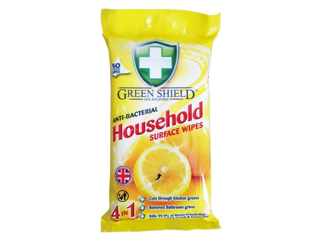 Univerzální vlhčené ubrousky Green Shield s antibakteriálním účinkem pro rychlý a hygienický úklid. Jsou ideální pro čištění a dezinfekci různých povrchů v domácnosti, jako jsou kuchyňské linky, stoly, kliky dveří nebo koupelnové vybavení. Účinně odstraňují nečistoty a ničí 99,9 % bakterií. Balení obsahuje 50 kusů a je opatřeno praktickým uzavíratelným víčkem.