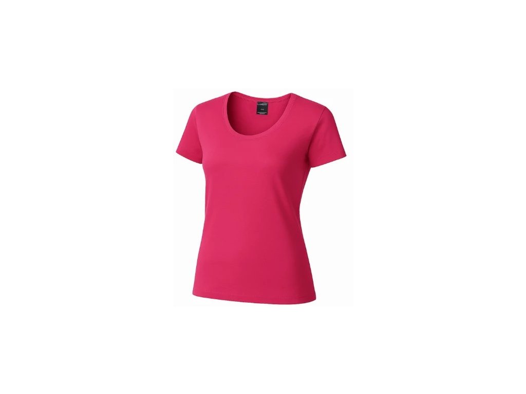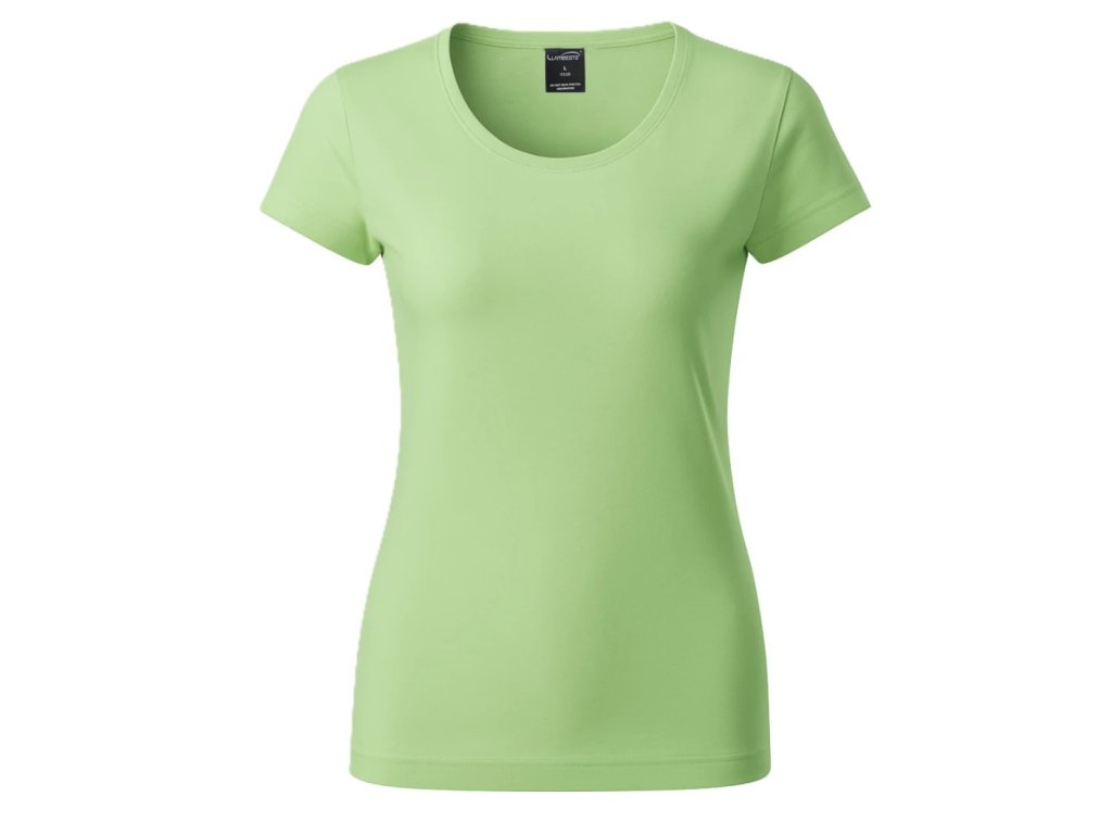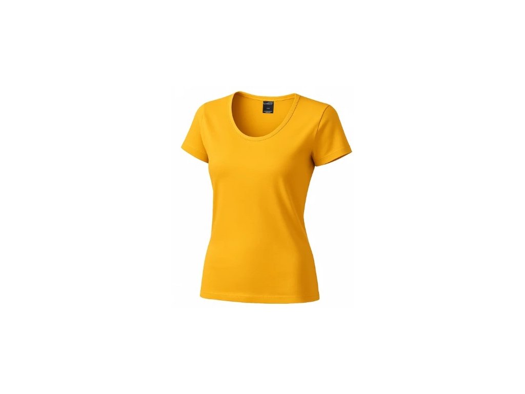 Dámské tričko s krátkým rukávem, výstřihem do U, z pevného interlocku (210 g/m²). Vyrobeno ze 100% česané bavlny, střih s bočními švy pro lepší padnutí.