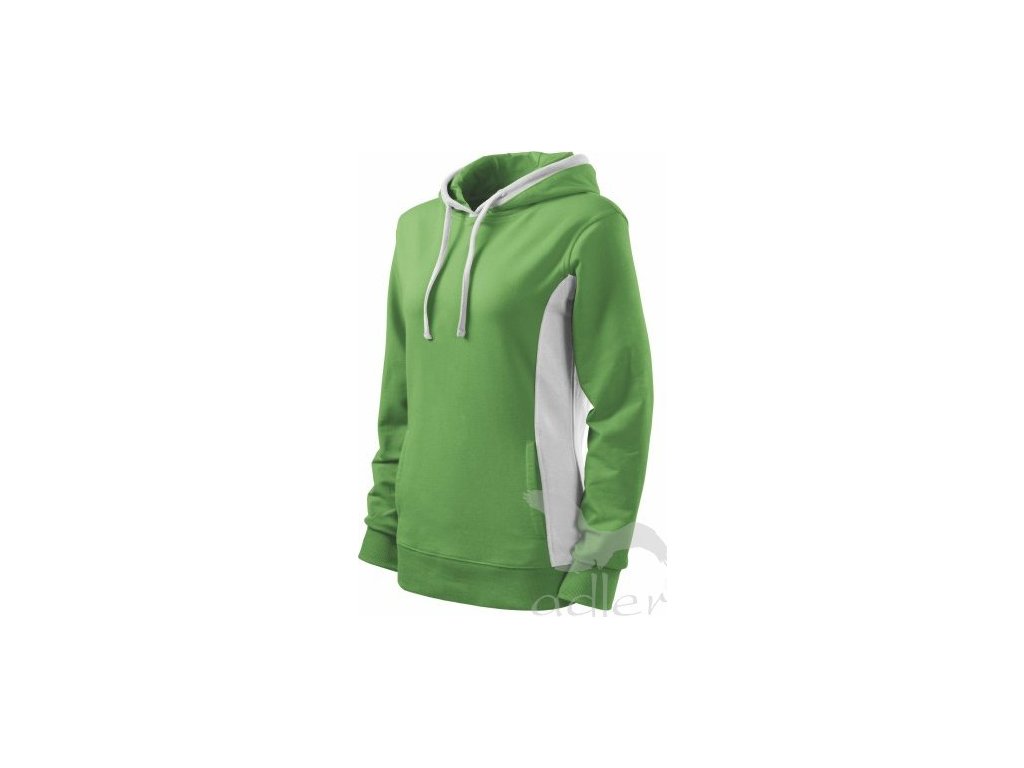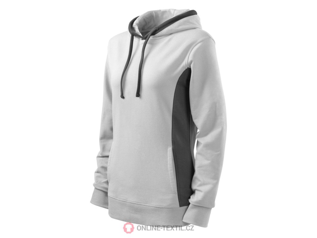 Dámská mikina s kapucí a bílými doplňky.