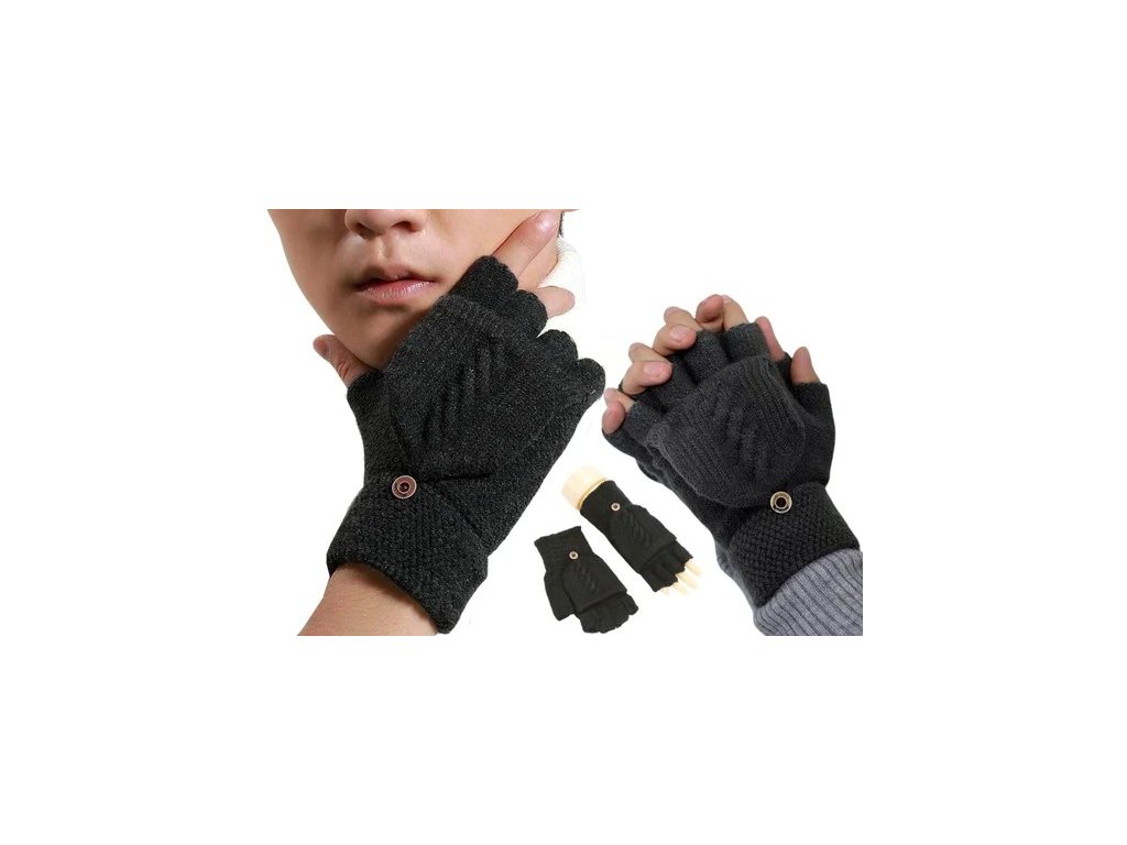 Dámské zimní rukavice s překlopnou kapsou, která je uchycena knoflíkem.