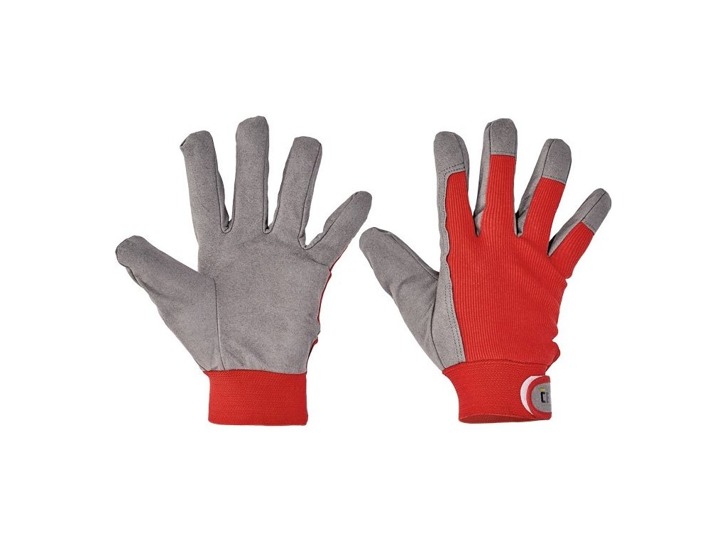 • rukavice z hovězí štípenky v dlani s podšívkou • hřbet a manžeta z bavlněné tkaniny