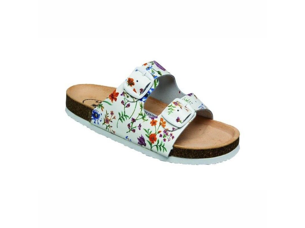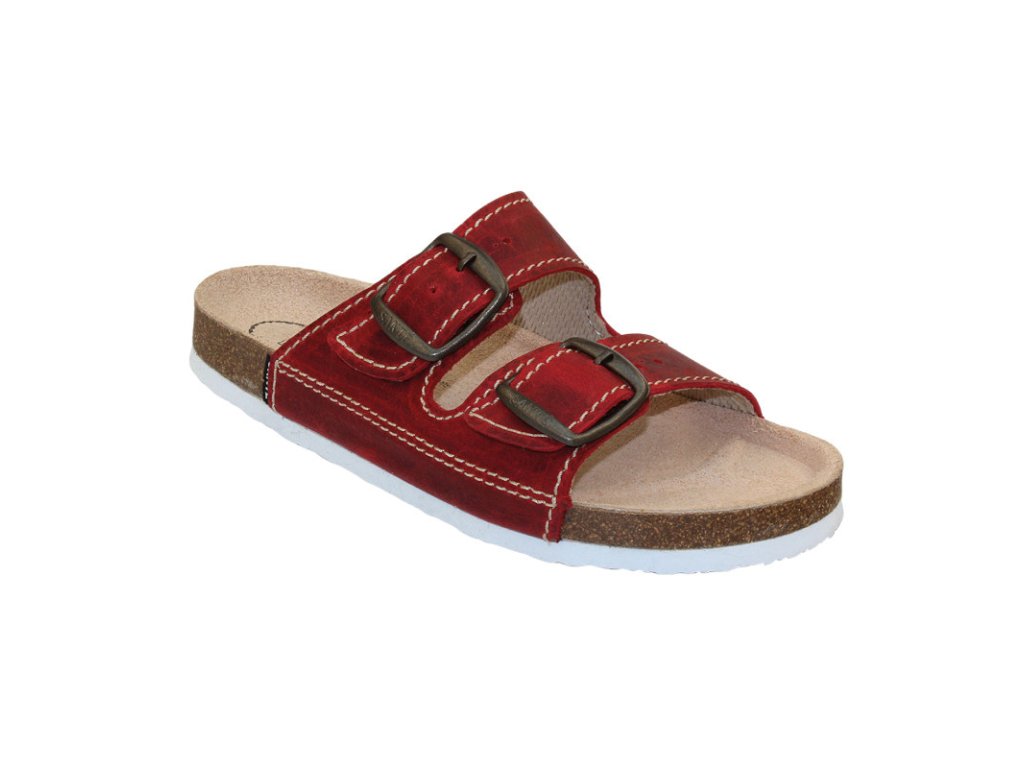 Pohodlná zdravotní obuv s anatomicky tvarovanou stélkou. Anatomicky tvarovaná kožená stélka podpírá příčnou i podélnou klenbu, zabraňuje tvorbě ploché nohy. Jsou určeny jako zdravotní, pracovní, domácí či vycházková letní obuv. Podešev protiskluzová, nezanechává šmouhy na povrchu. Nastavitelná šíře obuvi - na dvě přezky. Certifikovaná obuv.