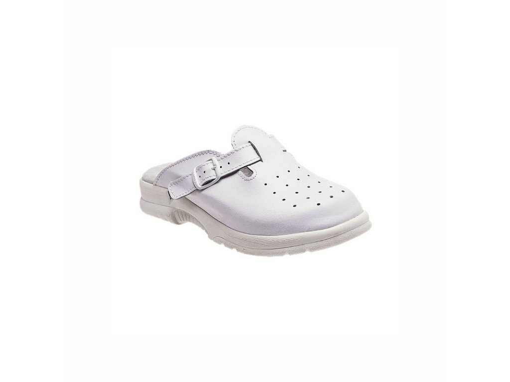 Dámský bílý pantofel s plnou špičkou,prodyšná, z mikrovlákna a s membránovou stélkou . Protiskluzová podešev, nezanechává šmouhy na povrchu. Nastavitelná šířka na jednu přezku.Certifikovaná pracovní obuv.