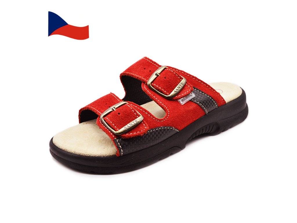Dámské zdravotní pantofle jsou v červené barvě. Tato pohodlná, zdravotně nezávadná obuv je osvědčena jako letní vycházková obuv, ale i jako obuv přezouvací v kancelářích či jiných čistých prostorách po celý rok.