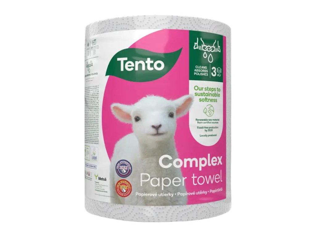 Nová 3-vrstvá utěrka TENTO COMPLEX 3in1 je inovativní kombinací 3 vrstev: 1x profesionální utěrky na čištění a 2x papírové utěrky. Odolná modrá vrstva dokonale odstraňuje veškeré nečistoty a 2 bílé vrstvy absorbující jako houba, dobře utírají do sucha a leští. Gramáž 21,2 g/m2.