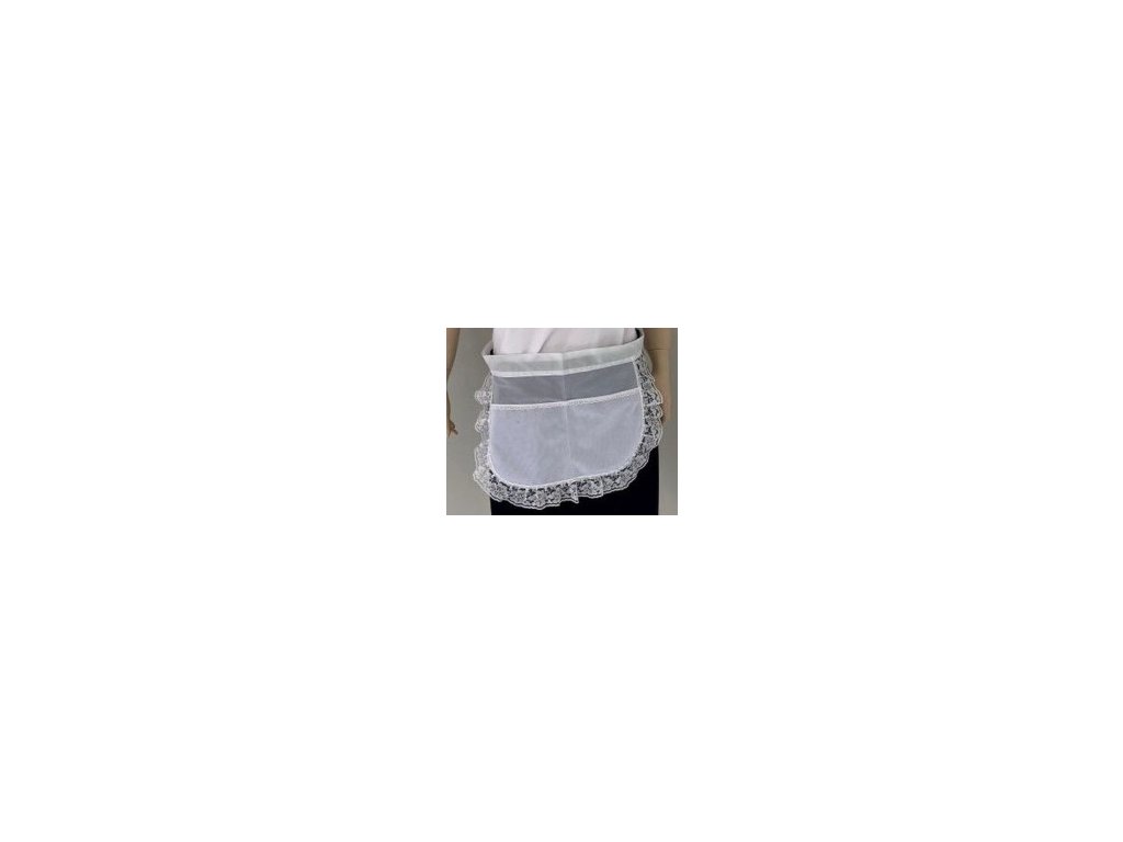 Zástěrka pro servírky, s kapsou, zdobená krajkou.